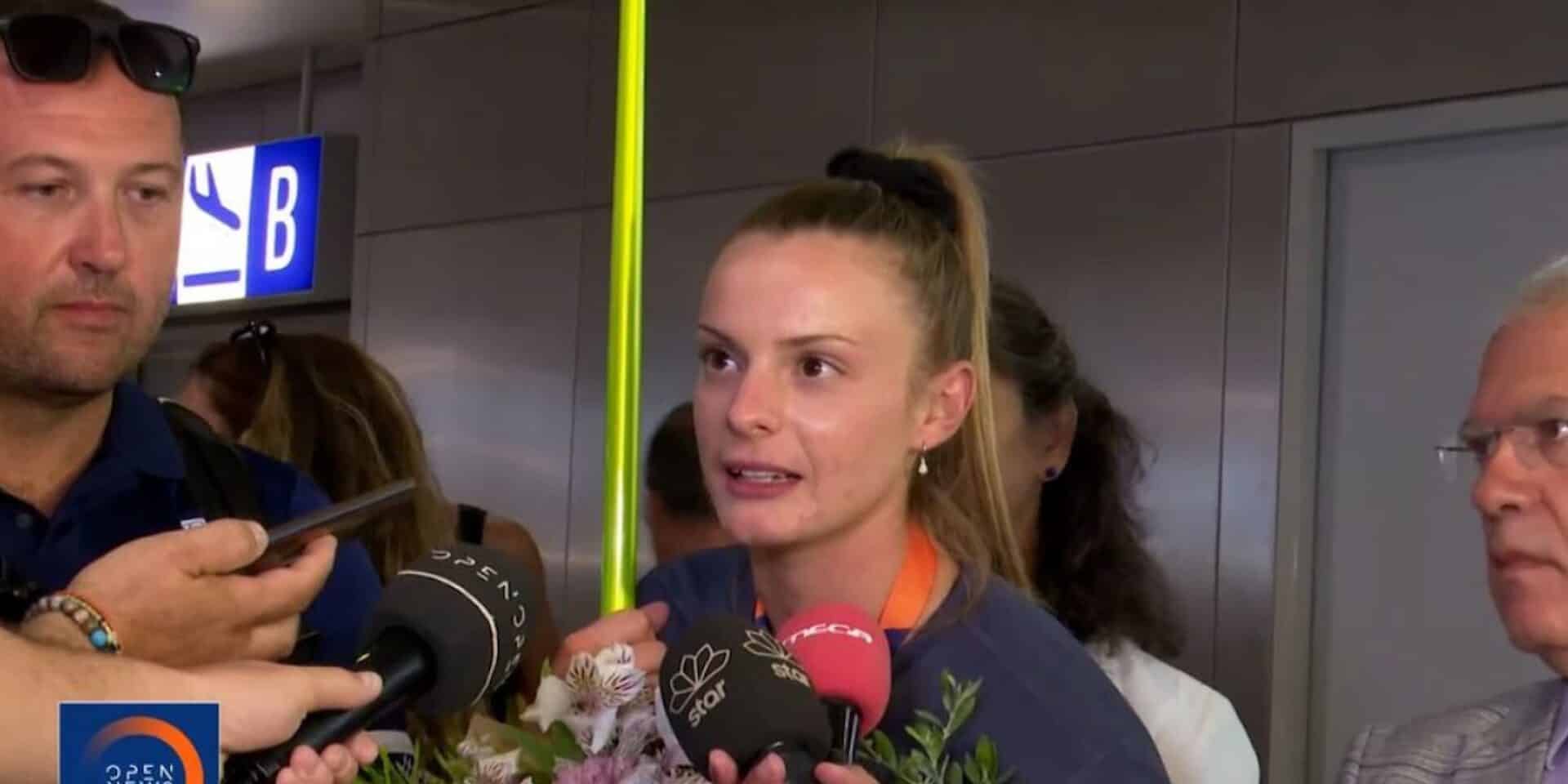 Το χρυσό κορίτσι του ακοντισμού, που επέστρεψε από το Μόναχο μαζί με τον προπονητή της και την υπόλοιπη αποστολή, είχε το πιο θερμό καλοσώρισμα στη Θεσσαλονίκη, καθώς η αίθουσα αφίξεων του αεροδρομίου «Μακεδονία» γέμισε με φωνές και χειροκροτήματα των δικών της ανθρώπων που ήρθαν από την Νέα Καλλικράτεια για να την υποδεχτούν όπως της αξίζει σύμφωνα με το politic.gr.