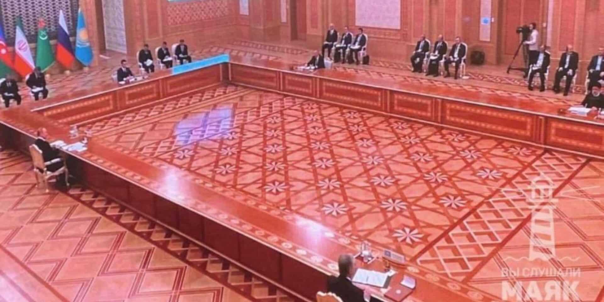 There are 5 world leaders attending today’s Caspian Summit in Ashgabat. Putin is one of them. I think their table is too small. pic.twitter.com/ixZqafoPOK