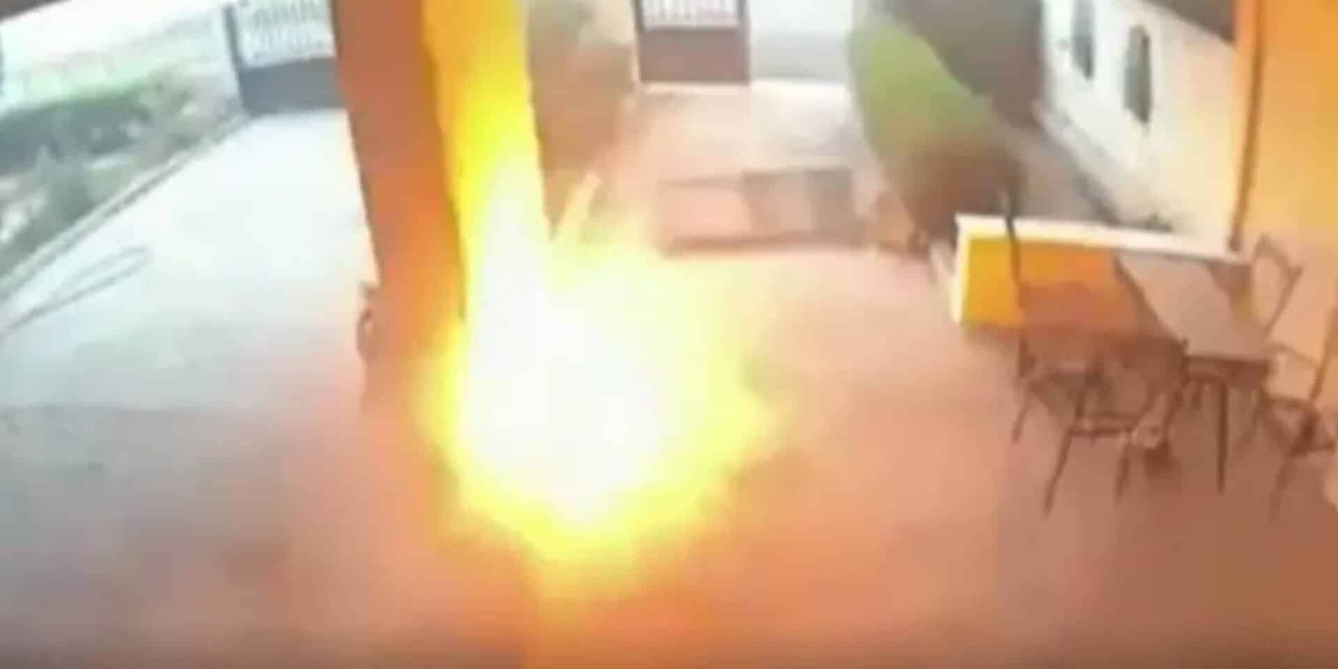 Ο οδηγός της διερχόμενης μηχανής σώζεται κυριολεκτικά στο δευτερόλεπτο. Από την ανατίναξη, μια μεταλλική αντλία εκσφενδονίζεται με φονική ταχύτητα, ισοπεδώνει την καγκελόπορτα και καρφώνεται στην είσοδο της πολυκατοικίας.