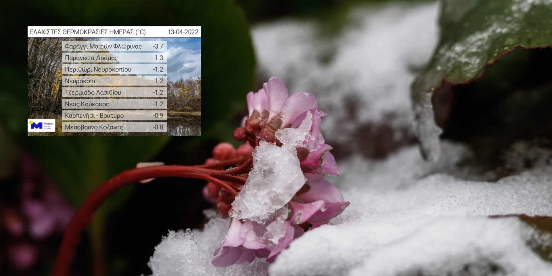 Κοντά στους -4 βαθμούς έφτασε η ελάχιστη θερμοκρασία το πρωί της Τετάρτης (13/4) στα βόρεια, σύμφωνα με το meteo του Αστεροσκοπείου.