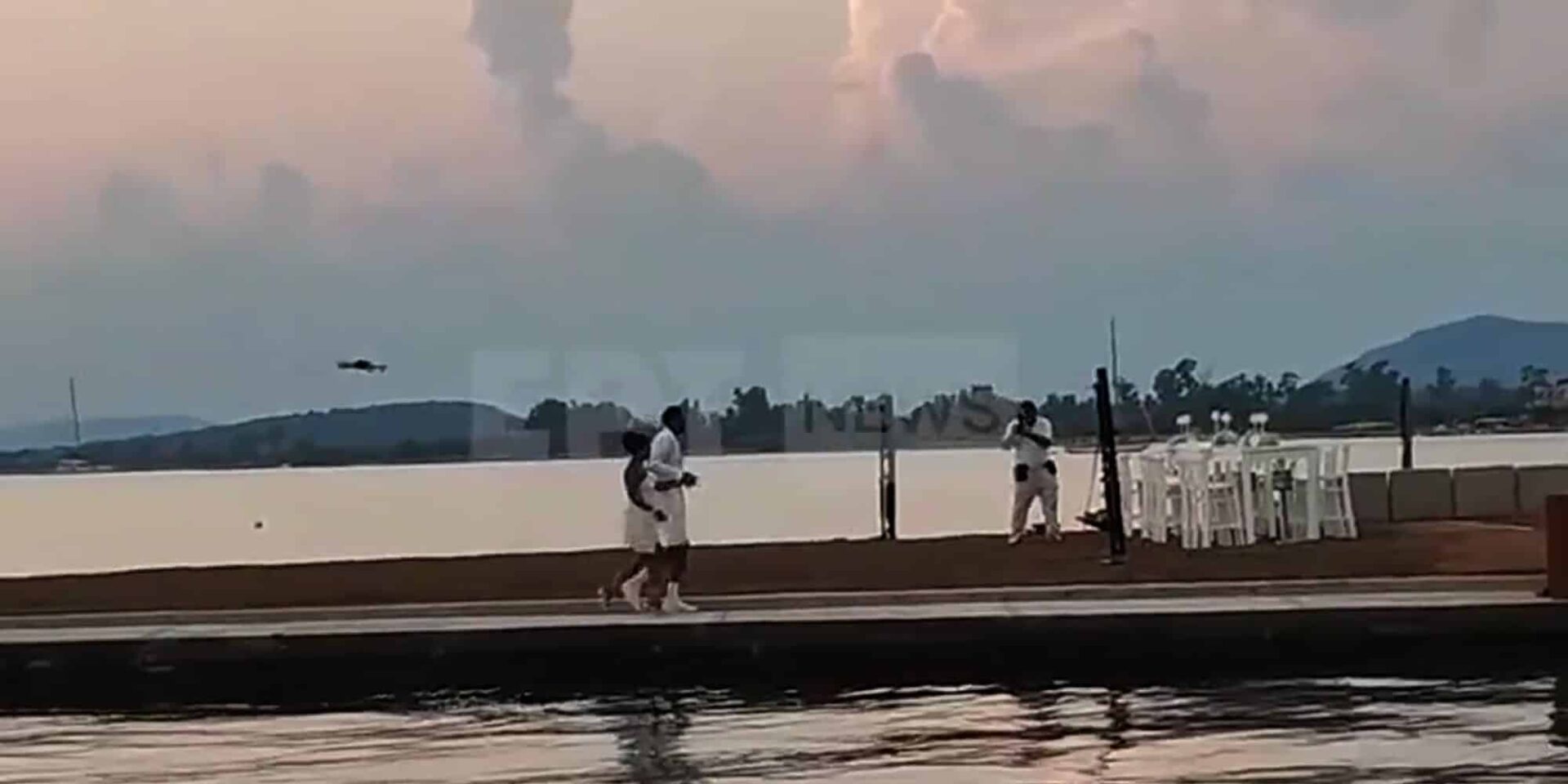 Η κίνηση στο αεροδρόμιο της Καλαμάτας ήταν ιδιαίτερα αυξημένη, καθώς οι περίπου 200 καλεσμένοι του ζευγαριού καταφθάνουν αεροπορικώς, κυρίως από το εξωτερικό, με ιδιωτικά τζετ και ελικόπτερα.