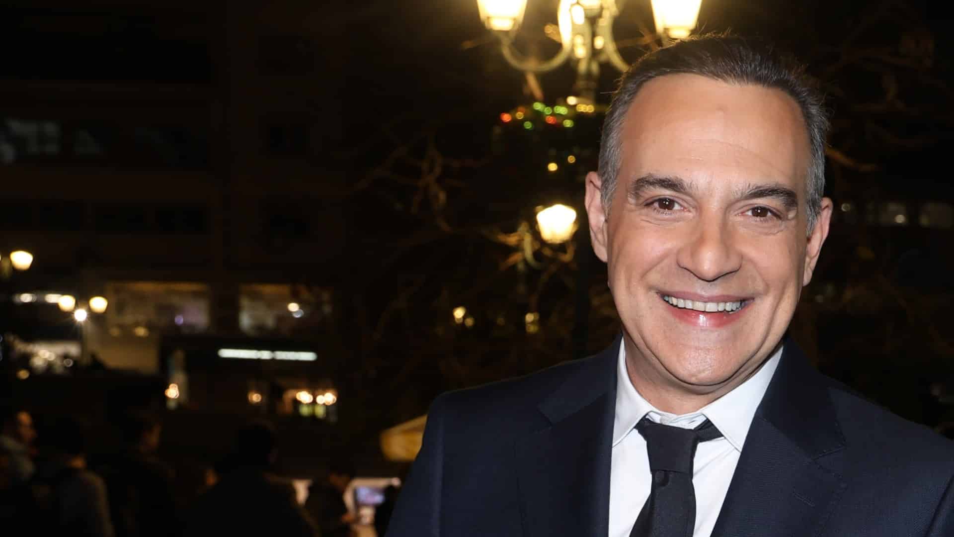 Το τηλεοπτικό συνεργείο συνάντησε τον ηθοποιό και παρουσιαστή στην κοπή της πίτας της θεατρικής παράστασης “Το Όνομα”, στην οποία συμμετέχει, ρωτώντας τον για την επιστροφή της πρώην συζύγου της, Κατερίνας Καραβάτου, στον ΑΝΤ1, μετά το “κόψιμο” της Ελένης Τσολάκη.